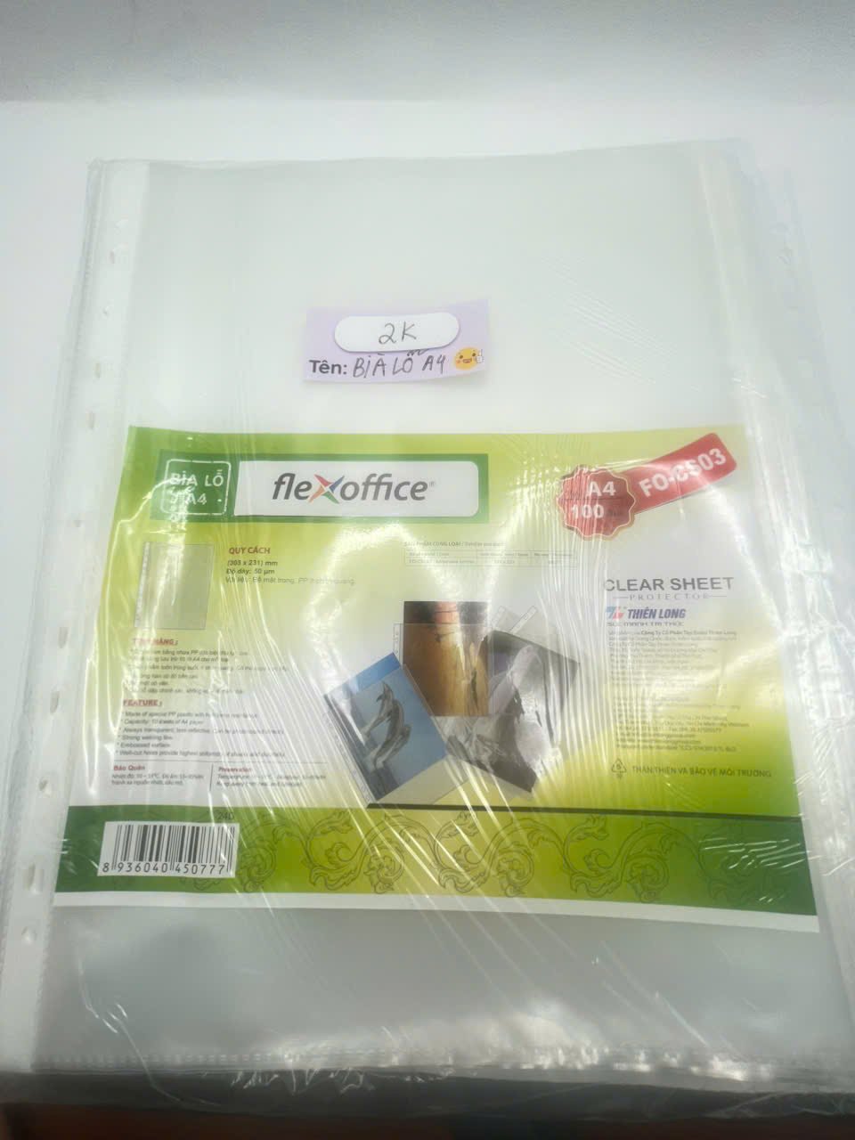 Bìa Lỗ A4 Flexoffice Thiên Long – Bìa Lá Trong Suốt Đựng Tài Liệu, Dùng File Còng, Bảo Vệ Giấy Tờ Chống Bụi Ẩm